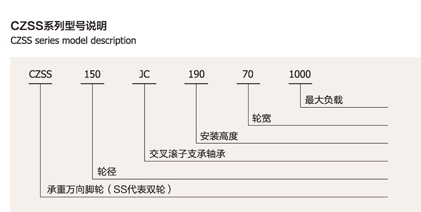 CZSS輪芯采用精密鑄鐵或精密壓鑄鋁合金成型,回轉(zhuǎn)機(jī)構(gòu)采用專(zhuān) 業(yè)設(shè)計(jì)的非標(biāo)滾珠軸承,經(jīng)特殊工業(yè)制造,已達(dá)到轉(zhuǎn)動(dòng)靈活、抗沖擊、耐疲勞的作用。輪面采用化學(xué)反應(yīng)澆鑄的優(yōu) 質(zhì)進(jìn)口聚氨酯彈性體,行走噪音低、無(wú)壓痕、保護(hù)地面、耐磨、抗切割。
