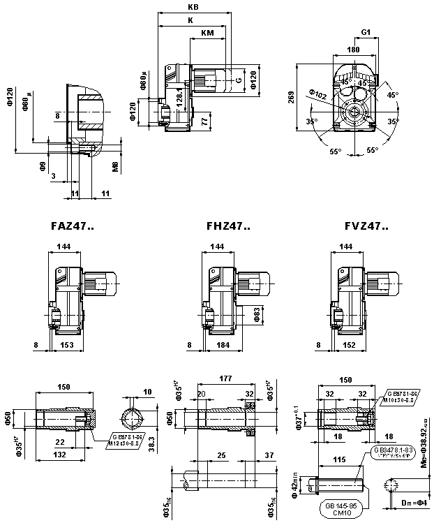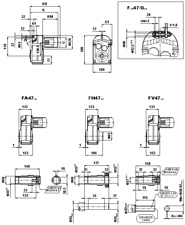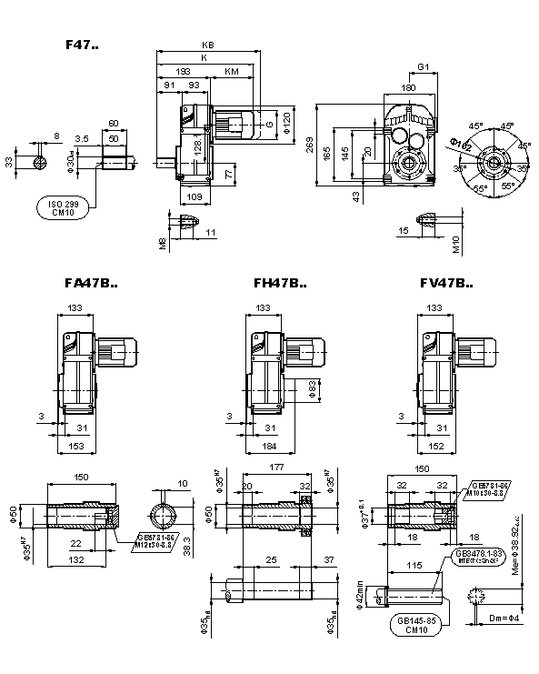 外形安裝尺寸(F47、FA47B、FH47B、FV47B、FF47、FAF47B、FHF47B、FVF47B、F..47/G、FA47、FH47、FV47、FAZ47、FHZ47、HVZ47)