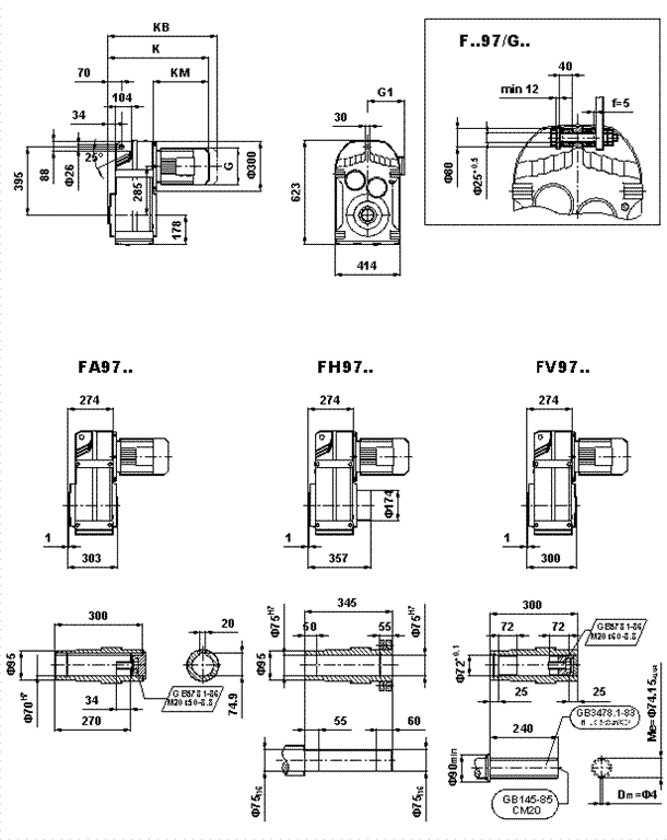 外形安裝尺寸(F97、FA97B、FH97B、FV97B、FF97、FAF97B、FHF97B、FVF97B、F..97/G、FA97、FH97、FV97、FAZ97、FHZ97、HVZ97)