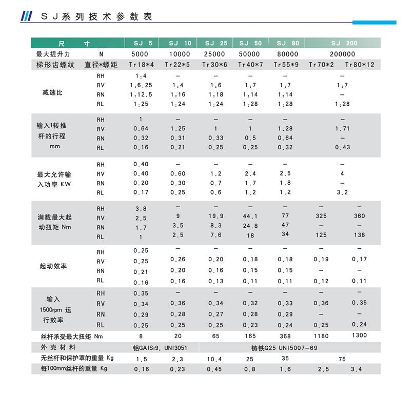的負載范圍為0.5T~20T,推桿線速可至30mm/s,輸入速度_為1500rpm,輸入型式多樣。多方位安裝使用。