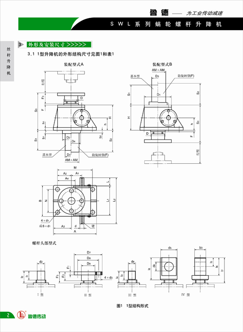 SWL蝸輪螺桿升降機(jī)規(guī)格型號(hào)有2.5T、5T、10T、15T、20T、25T、35T、50T、100、120T十種。結(jié)構(gòu)型式分為:蝸輪與螺桿為螺紋聯(lián)接,螺桿作軸向運(yùn)動(dòng)型;蝸輪與螺桿為鍵聯(lián)接,螺桿上配螺母,螺桿上的螺母作軸向運(yùn)動(dòng)兩種型式。有不同的裝配型式和絲桿頭部形式可選,速比有普通速比和慢速比兩種。
