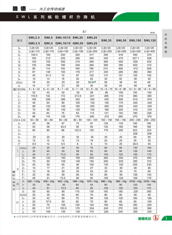 SWL2.5T蝸輪螺桿升降機(jī)_提升力為25KN,_拉力25KN,螺桿螺紋尺寸Tr30×6,蝸輪傳動(dòng)比普通6:1;慢速24:1,普通速比蝸桿每轉(zhuǎn)行程為1.0mm;慢速比蝸桿每轉(zhuǎn)行程為0.250mm,_許用功率1.45KW,普通速比總效率為23%;慢速比總效率為14%。絲桿升降機(jī)行程根據(jù)用戶要求制造。