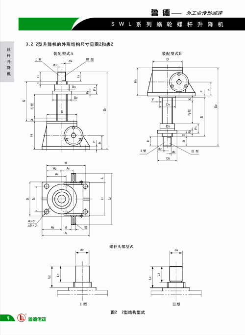 SWL蝸輪絲桿升降機(jī)的裝配型式及外形結(jié)構(gòu)尺寸