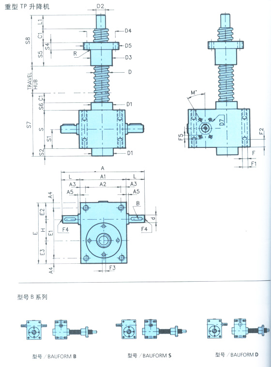 TP系列絲桿升降機(jī);滿足用戶的廣泛需要,本公司可提供各種螺桿頭,也可按用戶要求定做,TP也可按用戶要 求定作千斤頂以滿足用戶特殊機(jī)器的特殊要求,產(chǎn)品各大系列均采用雙導(dǎo)軌,確保升機(jī)能在 _惡劣的條件下發(fā)揮_工作效能。特殊的密封技術(shù)使蝸桿,蝸輪體系能長(zhǎng)期在良好的潤(rùn)滑 狀態(tài)下運(yùn)轉(zhuǎn)。