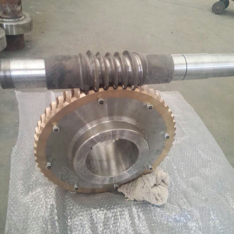 蝸輪蝸桿用于兩交叉軸(交叉角一般為直角)間的傳動。蝸輪相當于斜齒圓柱齒輪,其齒輪分布在圓環(huán)面上使齒輪能包住蝸桿已_接觸狀況這是蝸輪形體的一個特征。蝸輪多采用錫青銅有利于減小摩擦,青銅質(zhì)地比較軟,一般蝸桿的材料都比蝸輪硬,蝸輪是被動輪,蝸桿是主動輪一般都與電機相連,萬一設(shè)備發(fā)生故障不能轉(zhuǎn)動,電機可以通過蝸桿把質(zhì)地軟的蝸輪損壞,來保護電機不被燒壞。
