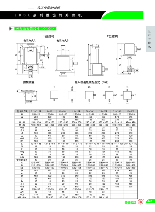 蝸輪絲桿升降機(jī)相比較其效率_,使用壽命更長,并具有體積小、重量輕、結(jié)構(gòu)緊湊、安裝方便、使用靈活、可靠型高等諸多優(yōu)點(diǎn)。_輸入轉(zhuǎn)速500r/min,_提升速度2.7m/min,能按_程序準(zhǔn)確的控制調(diào)整提升或推進(jìn)的高度,承載能力為2.5T~50T。壓力負(fù)荷較低時(shí)允許_的提升高度,提升不同負(fù)荷是允許的扭矩、功率、轉(zhuǎn)速不同,不同啟動(dòng)持續(xù)率的_功率不同、輸入軸伸處允許承受_的徑向力,允許裝齒輪,鏈輪或皮帶輪。