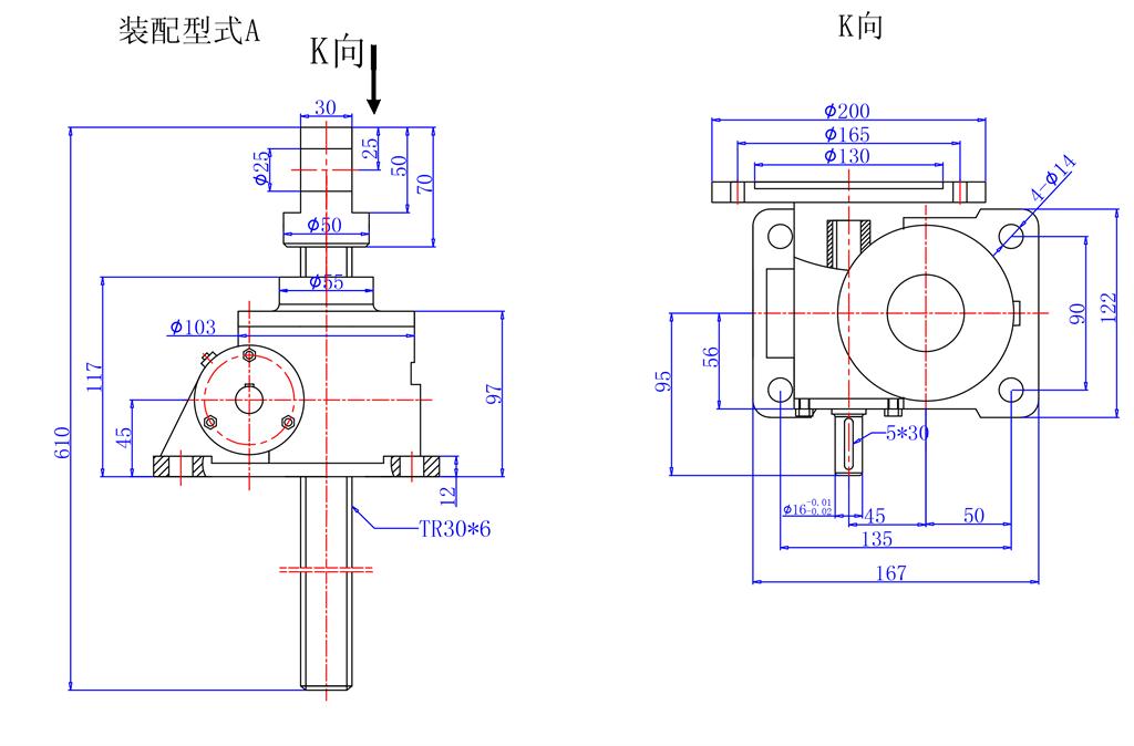 蝸輪絲桿升降機(jī)CAD外形圖SWL2.5M-1A-IV-400-F-魯?shù)聜鲃?/h1>