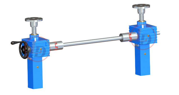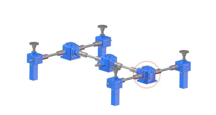 絲桿升降機(jī)工作平臺(tái)四臺(tái)(包含四臺(tái))以下的聯(lián)動(dòng)方案,建議盡量采用一臺(tái)電機(jī)來(lái)完成,因?yàn)殡姍C(jī)每分鐘的轉(zhuǎn)速都有速差,如果采用多臺(tái)驅(qū)動(dòng)很難達(dá)到同步穩(wěn)定的效果。