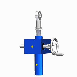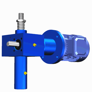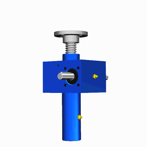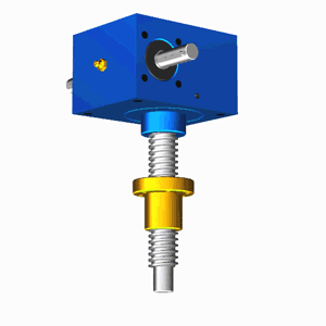 SJA梯形絲桿升降機(jī)的原理為蝸桿驅(qū)動蝸輪旋轉(zhuǎn),蝸輪中間為內(nèi)螺紋孔機(jī)構(gòu)(與絲杠相嚙合),再將旋轉(zhuǎn)運動傳遞至絲杠上下直線運動。